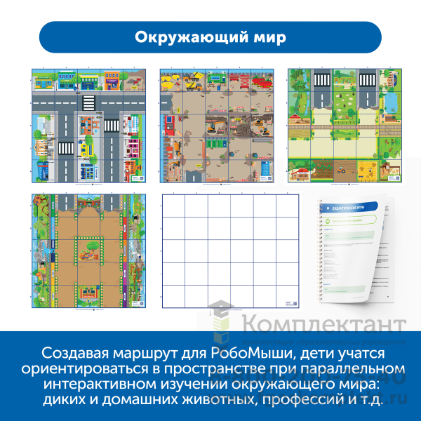 Программируемый робот РобоМышь помогает дошкольникам освоить навыки программирования и кодирования при параллельном интерактивном изучении окружающего мира: диких и домашних животных, профессий, природных и архитектурных достопримечательностей России и т.д.