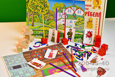 Набор разработан в соответствии с педагогическими принципами Фребель-педагогики и представляет собой специально составленные комплекты из элементов «Даров Фребеля» с авторскими иллюстрациями по мотивам сказок русских писателей. Карточки изготовлены из мелованной бумаги, ламинированной пленкой. Печать полноцветная. Элементы для игры изготовлены из дерева и пластика и упакованы в зип-пакеты.​