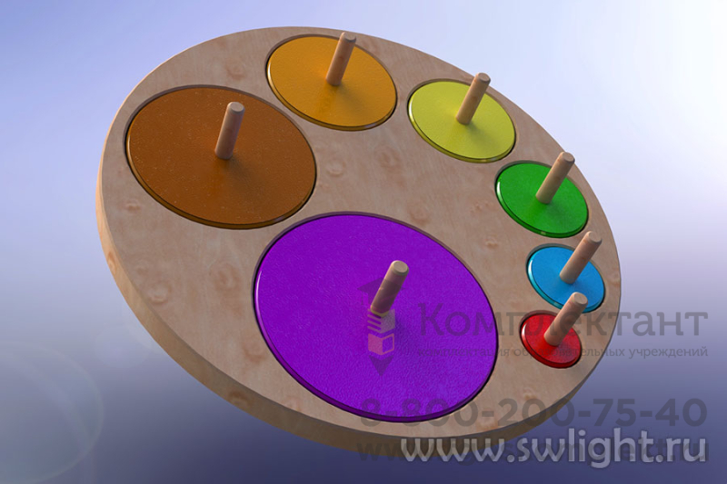 Яркая игрушка Палитра из натурального дерева предназначена для развития у детей мелкой моторики. Также может быть использована для упражнений на изучение цветов.