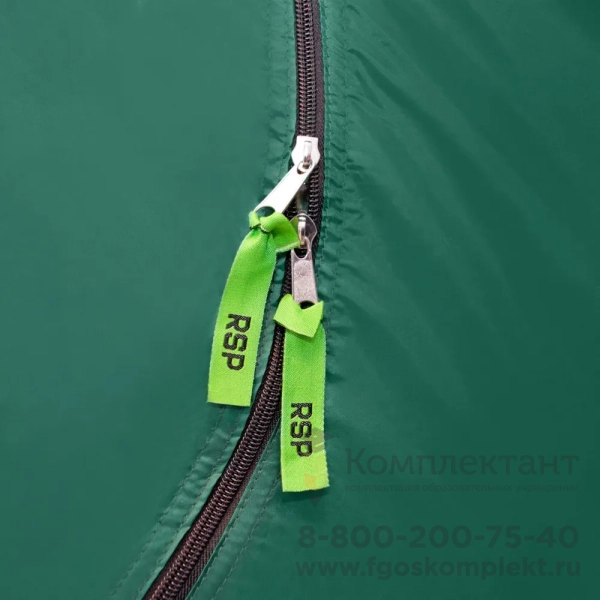 Молнии и бегунки в палатке очень высокого качества, на бегунках установлены тканевые пуллеры салатового цвета, благодаря им открывать и закрывать дверь на много удобнее, а в темное время суток проще найти бегунок.