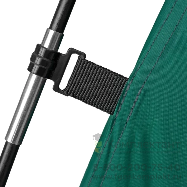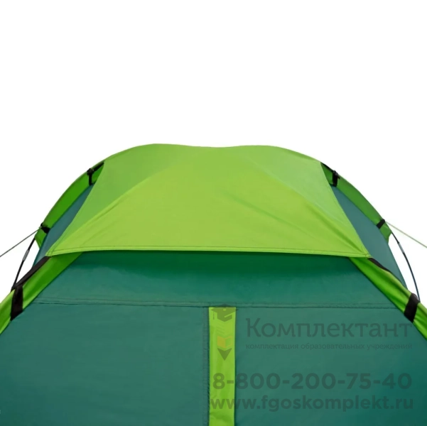 Тент палатки изготовлен из прочного и в то же время легкого материала Polyester 190T 63D с показателем водонепроницаемости 3000 мм. водного столба, что является очень высоким показателем и способен выдержать любой дождь. Тент палатки имеет пропитку задерживающую распространение огня. Дно палатки изготовлено из армированного полиэтилена – терпаулинга, который является очень крепким материалом показателем водонепроницаемости 10 000 мм. водного столба. Каркас палатки изготовлен из высококачественных фиберглассовых сборных дуг с металлическими наконечниками, они обладают хорошей гибкостью и большим запасом прочности.
