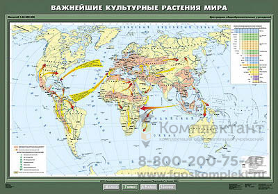 Учебн. карта "Важнейшие культурные растения мира" 100х140